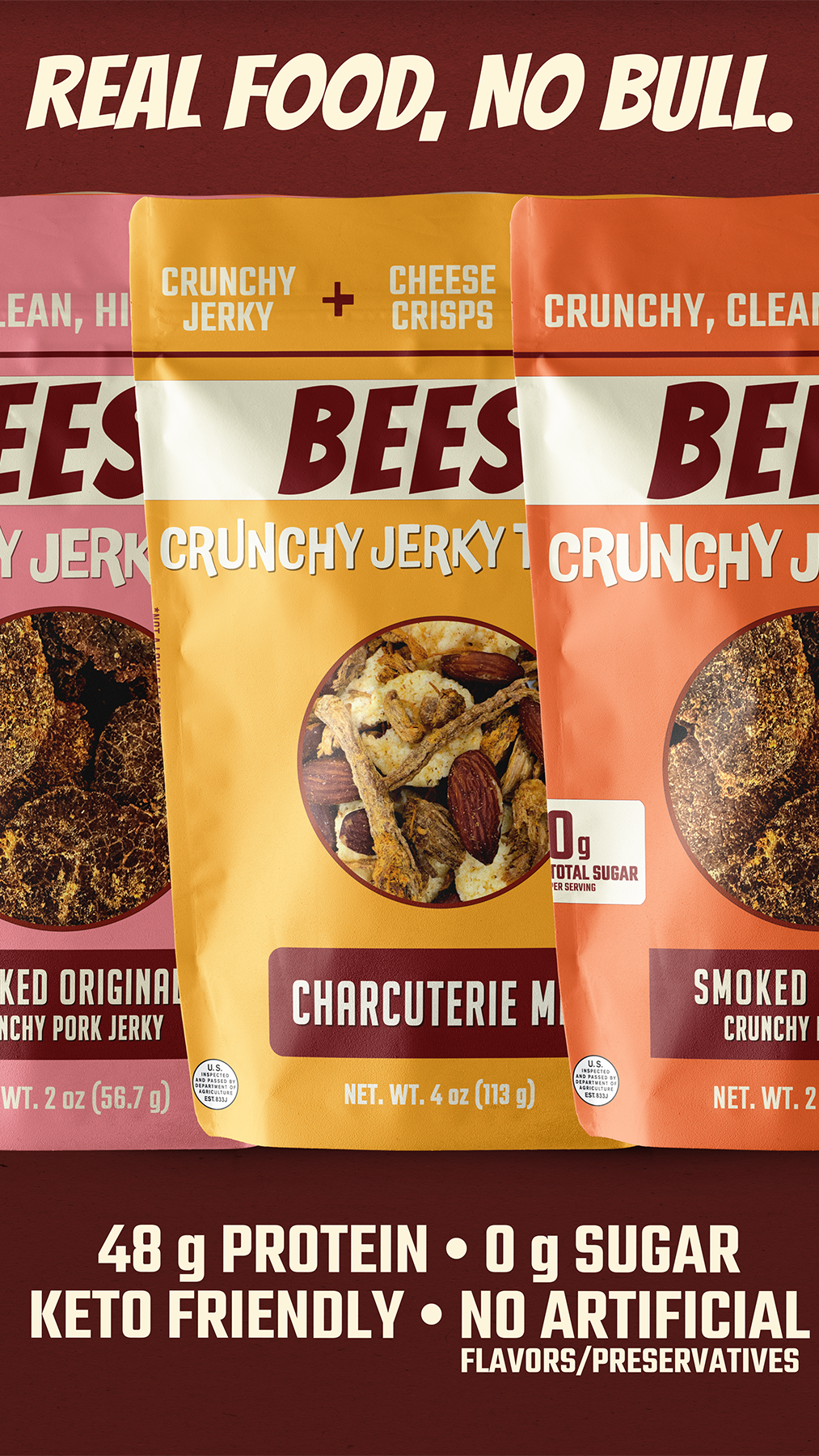 Old school jerky was good but crunchy jerky is betterOur patented Crunchy Jerky packs ultra-high protein, zero sugar, and only clean ingredients. Real protein. Bold crunch. Zero nonsense, fuel your inner BEEST.